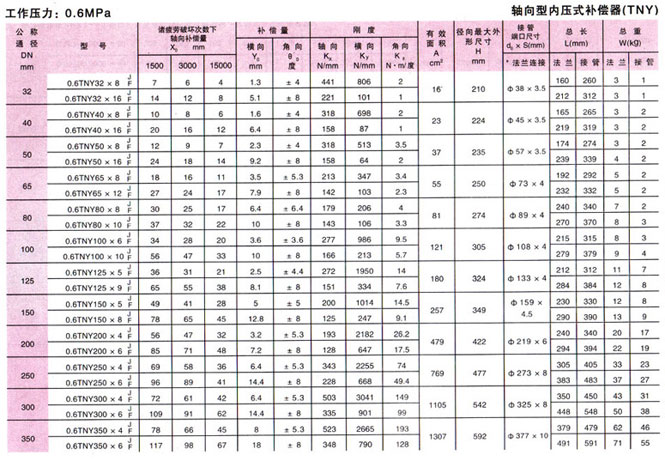 軸向型內壓式波紋補償器(TNY)參數5