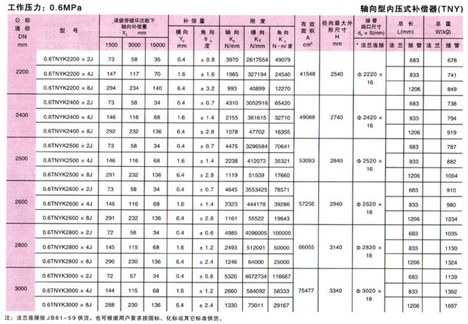 軸向型內壓式波紋補償器(TNY)參數8