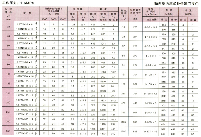 軸向型內(nèi)壓式波紋補(bǔ)償器(TNY)參數(shù)12
