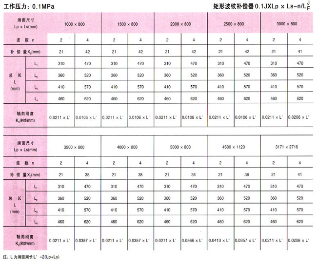 矩形波紋補(bǔ)償器(JX型)參數(shù)